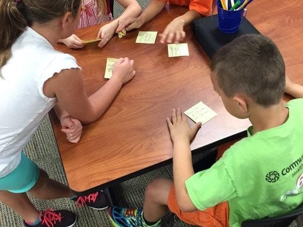 Earlier this month, first grade teacher Mitch Mosbey (@mitchmosbey) used the QFT in his classroom at Promise Road Elementary. The Question Focus (QFocus), “A sentence is made of parts,” was used during his lesson on sentence structure. As a part of prioritization, students were instructed to “keep or crinkle” their post-its!
